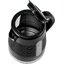 Управление осуществляется механически с кнопочными переключателями, а клавиша включения расположена сбоку корпуса для удобного доступа. Световая индикация информирует о работе прибора, а откидная защелкивающаяся крышка облегчает залив воды и предотвращает случайные проливания при открывании. Фильтр от накипи из нейлона задерживает крупные частицы и легко промывается под краном, продлевая срок службы и улучшая вкус напитков.