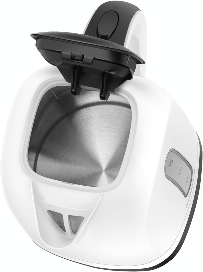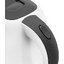 Дизайн сосредоточен на практичности и эргономике. Пластиковый корпус делает устройство лёгким и ударопрочным, а аккуратная матовая поверхность легко очищается от следов воды и рук. Ручка с встроенной клавишей включения сверху рассчитана на удобную эксплуатацию одной рукой, а откидная защелкивающаяся крышка упрощает заполнение и ополаскивание колбы. Подставка из пластика выполнена с учётом повседневного использования: есть отсек для шнура, который сохраняет порядок на столешнице, и нескользящие ножки для устойчивого положения на любой поверхности.