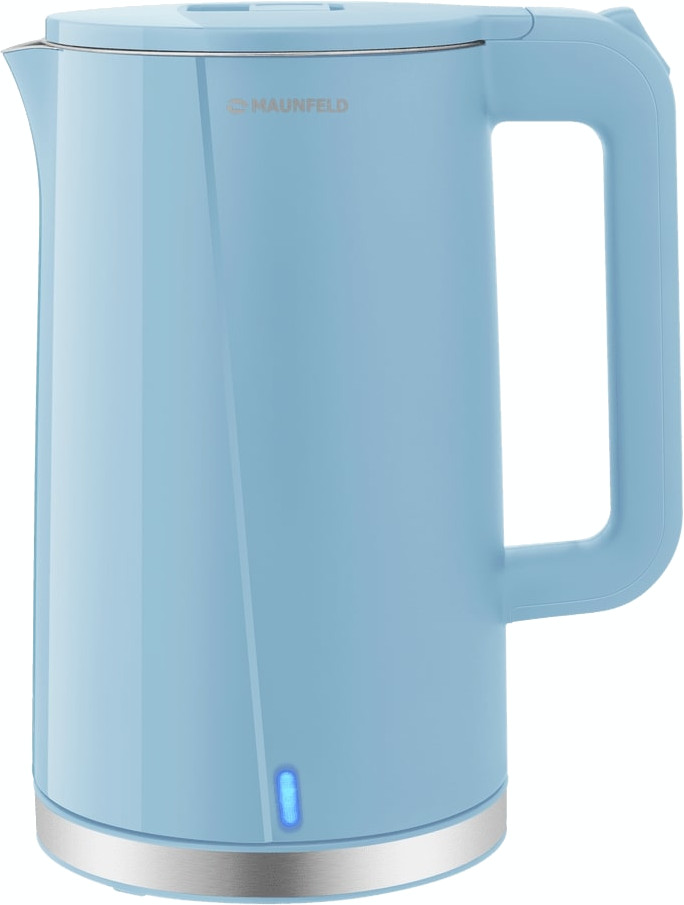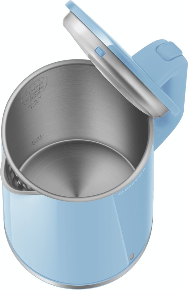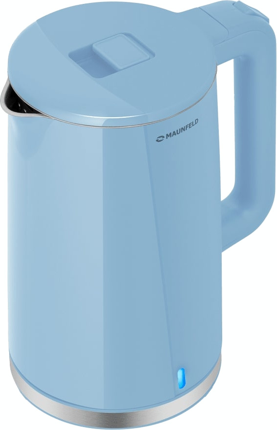 Электрочайник Maunfeld MGK-633BL. Голубой лаконичный корпус придаёт кухне свежий акцент и легко вписывается в современные интерьеры. Внешняя поверхность выполнена из прочного пластика, что делает прибор лёгким и неприхотливым в уходе. Внутренняя колба из нержавеющей стали обеспечивает нейтральность по отношению к воде и сохраняет вкус напитков без посторонних привкусов. Двойные стенки увеличивают теплоизоляцию, благодаря чему вода дольше остаётся горячей, а внешняя поверхность остаётся более прохладной.