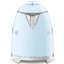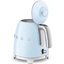 Чайник Smeg KLF05PBEU изготовлен ведущей итальянской фирмой, он относится к известной коллекции в стиле 50-х годов 20 века. Компактная модель высотой 20 см и весом 1 кг может подойти для семей из 2-3 человек, а также для поездок на дачу или использования в офисе. Привлекает внимание корпус необычного пастельно-голубого цвета с блестящими деталями — удобной хромированной ручкой, полированным стальным носиком, оригинальным рычагом включения. Сам корпус изготовлен из специального пластика, безопасного и термостойкого, а его внутренняя часть сделана из нержавеющей стали.