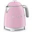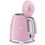 Электрический чайник Smeg KLF05PKEU в корпуса оригинального ярко-розового цвета станет отличным подарком коллеге, маме или бабушке. Объем 0,8 литра позволяет приготовить три чашки чая. Об этот чайник невозможно обжечься, так как корпус и ручка изготовлены из специального термостойкого пластика, а внутренняя часть и носик — из нержавеющей стали. Вы легко подберете коллекцию приборов подобного дизайна в стиле 50-х годов 20 века для любителей ретро-техники. Мини-чайник отличается малыми размерами — его высота составляет всего 20 см, весом всего 1 кг и высокой мощностью, которая достигает 1400 вт. Закипает он очень быстро, чему способствует также скрытый нагревательный элемент.