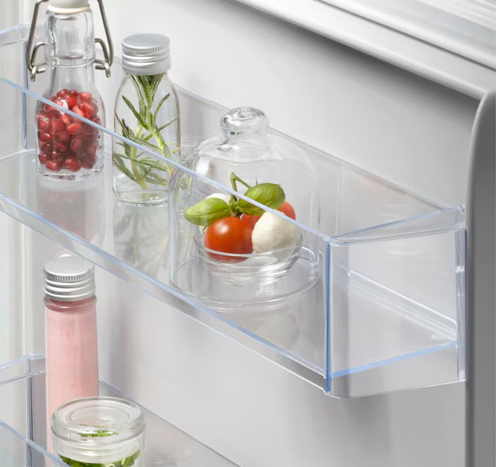 Полки в холодильнике позволяют рационально организовать хранение продуктов, обеспечить легкий поиск и доступ к ним. Основные материалы для изготовления полок — это пластик, стекло и металл. Часть полок можно переставлять по высоте или складывать вдвое или втрое.