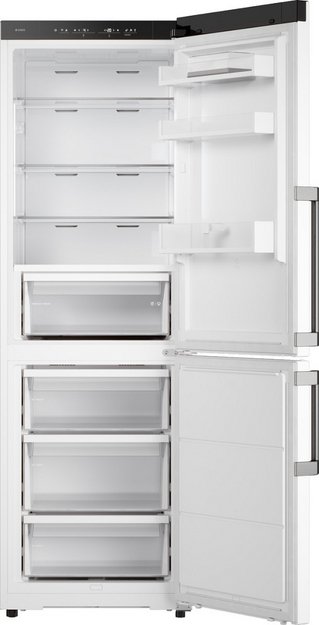 Данная модель — отдельностоящая, поэтому нужно тщательно подобрать место для ее размещения. Вы можете поменять направление открывания двери, так как упор переставляемый и ее можно перевесить на другую сторону. Такая функция открывает больше возможностей для установки. Холодильник с морозильником обладает всеми опциями, которые чаще всего ищут и выбирают покупатели. Стандартная конфигурация — универсальный вариант для любой квартиры. Количество камер: 2.