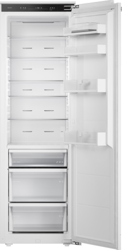 Встраиваемый прибор проще разместить в комнате, даже если общий метраж не такой уж большой. Вы можете спрятать его за декоративной панелью от мебельного фасада — советуем заранее определить нишу и заказывать панели исходя из типа крепления к двери. Способ монтажа в данной модели: жесткое крепление (система door on door) Вы можете поменять направление открывания двери, так как упор переставляемый и ее можно перевесить на другую сторону. Такая функция открывает больше возможностей для установки. Холодильник без морозильной камеры имеет свои преимущества: больше места для хранения продуктов краткого срока годности, разнообразие полок и ящиков для овощей, фруктов, молочных изделий. Количество камер: 1.