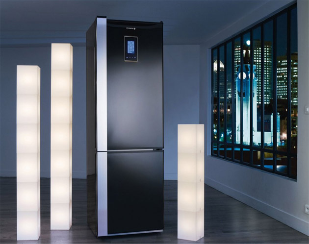 Последнее время достаточно широкое распространение получили холодильники черного цвета. Подобные устройства придают кухне особый стиль, однако не рекомендуется устанавливать их в небольшом помещении, особенно если фасад изготовлен не из стекла. Кроме того, черные холодильники требуют постоянного тщательного ухода, так как на них лучше заметны загрязнения.