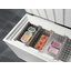 Внутренняя камера морозильного ларя, как правило, не содержит полок, ящиков и других подобных разделителей — это большой цельный отсек, в котором сверху могут крепиться металлические сетчатые корзины. Такая конструкция позволяет максимально увеличить вместительность устройства.