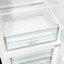 Общий полезный объем составляет 302 литра, из них 203 литра отведены под холодильную камеру и 99 литров под морозильное отделение. Четыре стеклянные полки выдерживают значительную нагрузку и обеспечивают ровную, гигиеничную поверхность для продуктов. Большой ящик и два контейнера для овощей и фруктов помогают поддерживать оптимальную влажность и порядок. На дверце расположены три полки для бутылок и соусов, что освобождает центральные полки для тарелок и кастрюль.