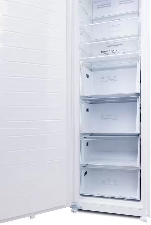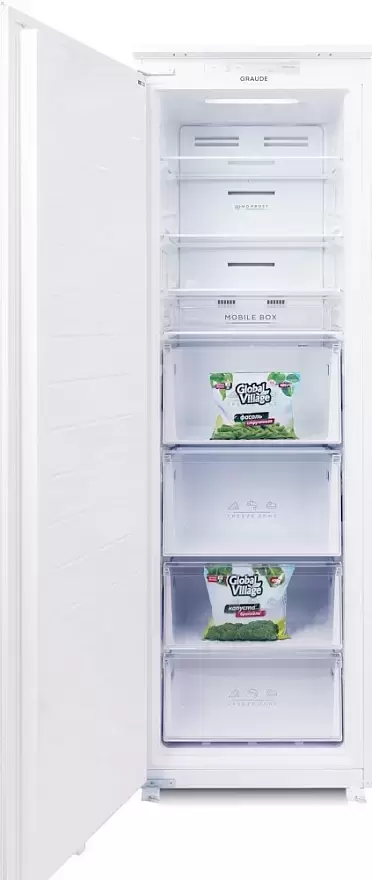 Встраиваемый морозильник Graude IG 180-3 — это стильное решение для тех, кто ценит минимализм и продуманную эргономику в кухонной мебели. Его компактные габариты 178.5×54×54.5 см позволяют разместить прибор в узком пенале, а исполнение «под навес вашего фасада» делает внешний вид максимально аккуратным и монолитным. Модель без видимой ручки и со скользящим креплением двери обеспечивает ровную фасаду поверхность и удобство закрывания без лишних выступов.