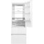 Холодильник Haier A4F745CGWGRU1 представляет собой высокую и вместительную модель с современным стеклянным фасадом и скрытой ручкой, что делает прибор аккуратным и минималистичным на любой кухне. Его габариты 200,6×70×67,5 см обеспечивают высокий объем при компактной ширине, а белый цвет корпуса легко вписывается в разные интерьеры. Три двери и нижняя морозильная камера оптимизируют эргономику: верхняя зона отведена под основной холодильник, а низ — для глубокого хранения и заморозки.