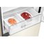 Полезный объем — 400 л: 285 л в холодильной части и 115 л в морозильной камере снизу. Вверху — четыре прочные стеклянные полки, включая складную среднюю с двумя позициями. На дверце — четыре балкона и отделение для бутылок, есть подставка для яиц. Для овощей и фруктов предусмотрен большой бокс или два отдельных — легко разделить запас по видам. Отдельная зона свежести суммарным объемом 22 л организована в двух контейнерах; для деликатных продуктов предусмотрена нулевая зона.