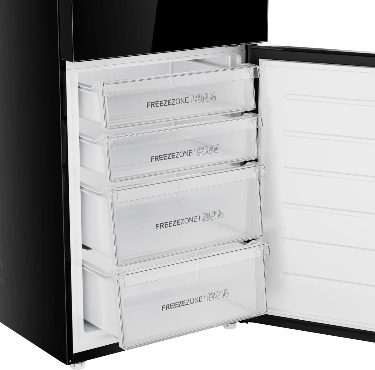 Трехкамерные модели выпускаются в нескольких вариантах. В некоторых случаях в качестве третьей камеры поступает так называемая зона свежести — отделение, где поддерживается температура около 0 градусов. В другом варианте подобные модели имеют морозильную камеру, состоящую из двух выдвижных ящиков.