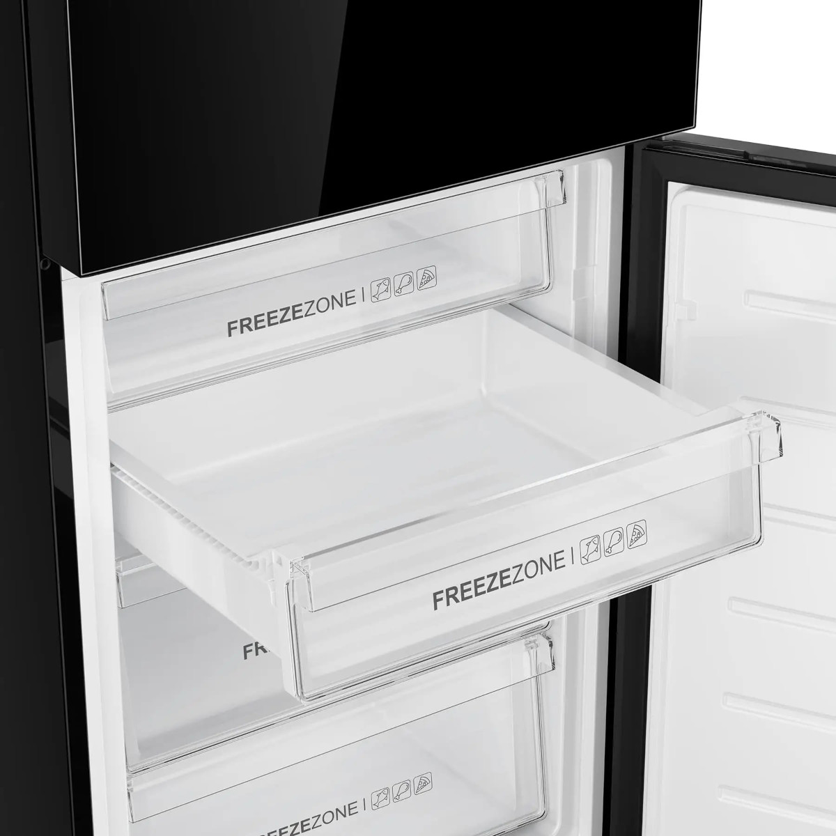 Холодильник Haier C4F640CGBGU1 — стильный отдельно стоящий прибор с черным стеклянным фронтом и прочным металлическим корпусом, который добавит элегантности любой кухне. Высота 200 см и ширина 59,5 см делают его оптимальным выбором для просторных кухонь. Скрытая ручка и гладкая поверхность фасада упрощают уход и создают минималистичный внешний вид, а возможность перевешивания дверей и регулируемые ножки дают свободу при установке.