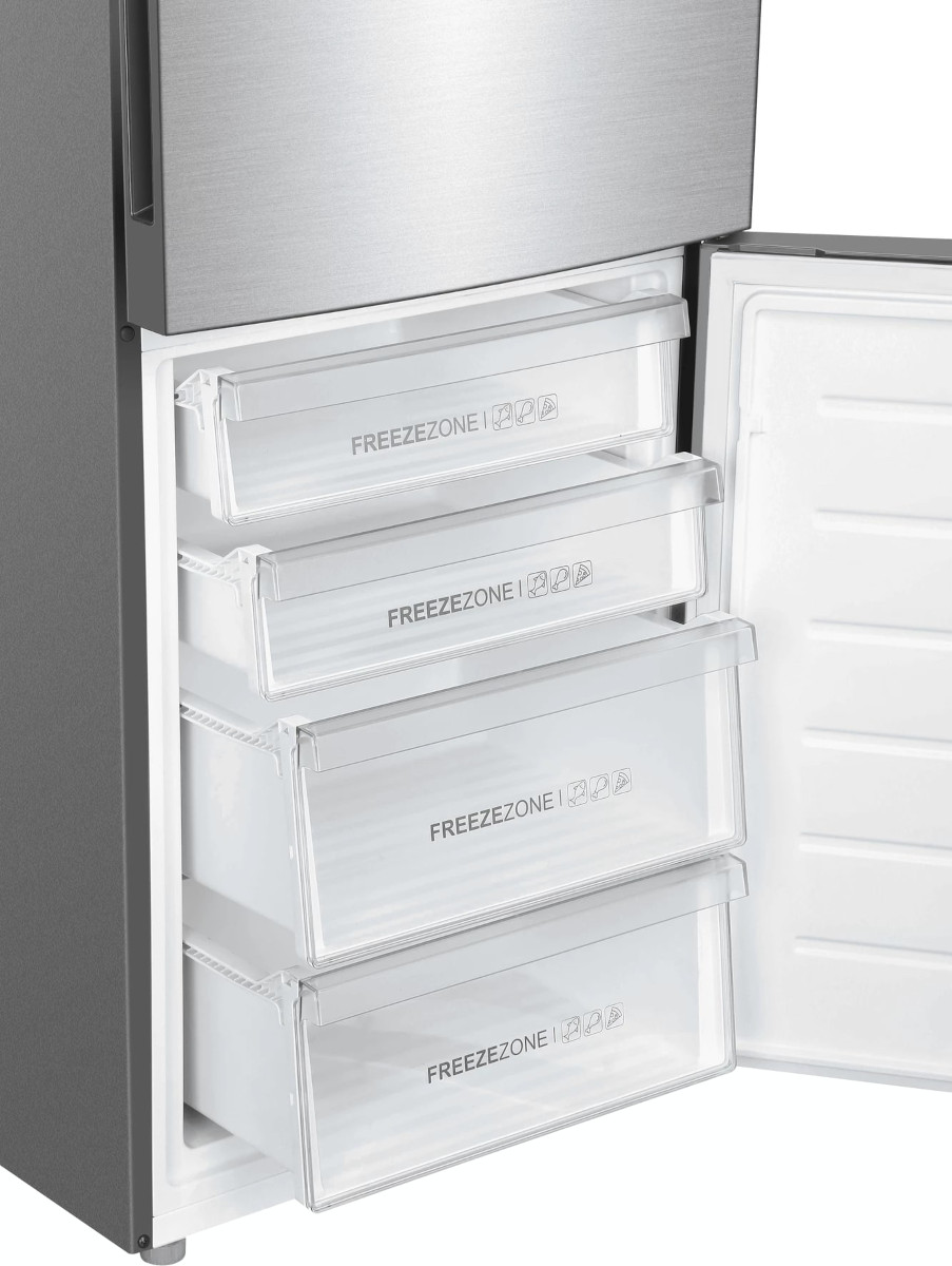 Трехкамерные модели выпускаются в нескольких вариантах. В некоторых случаях в качестве третьей камеры поступает так называемая зона свежести — отделение, где поддерживается температура около 0 градусов. В другом варианте подобные модели имеют морозильную камеру, состоящую из двух выдвижных ящиков.