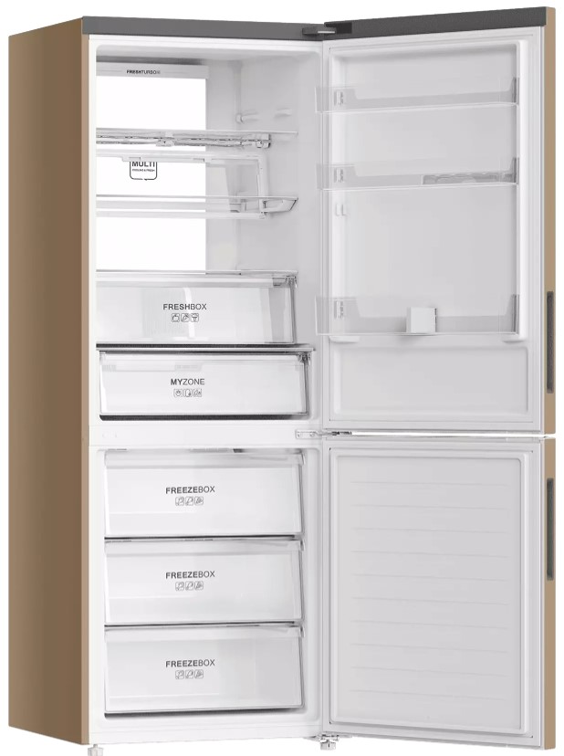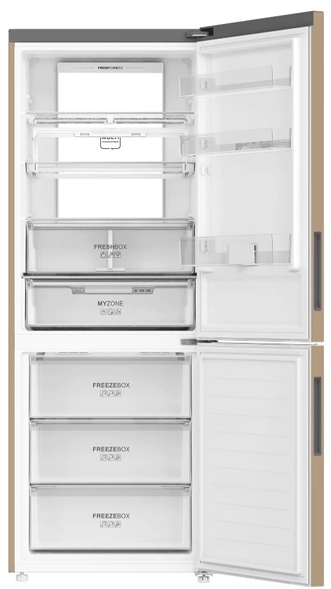 Трехкамерные модели выпускаются в нескольких вариантах. В некоторых случаях в качестве третьей камеры поступает так называемая зона свежести — отделение, где поддерживается температура около 0 градусов. В другом варианте подобные модели имеют морозильную камеру, состоящую из двух выдвижных ящиков.