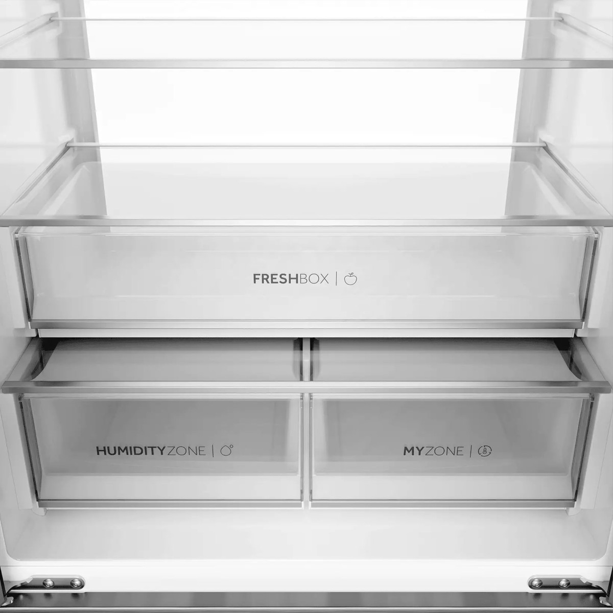 Специальная зона свежести предназначена для правильного и более длительного хранения овощей, фруктов, зелени. В ней поддерживается околонулевая температура, поэтому продукты не перемораживаются и не пересыхают. Система охлаждения этого холодильника — многопоточное охлаждение Multi-flow.
