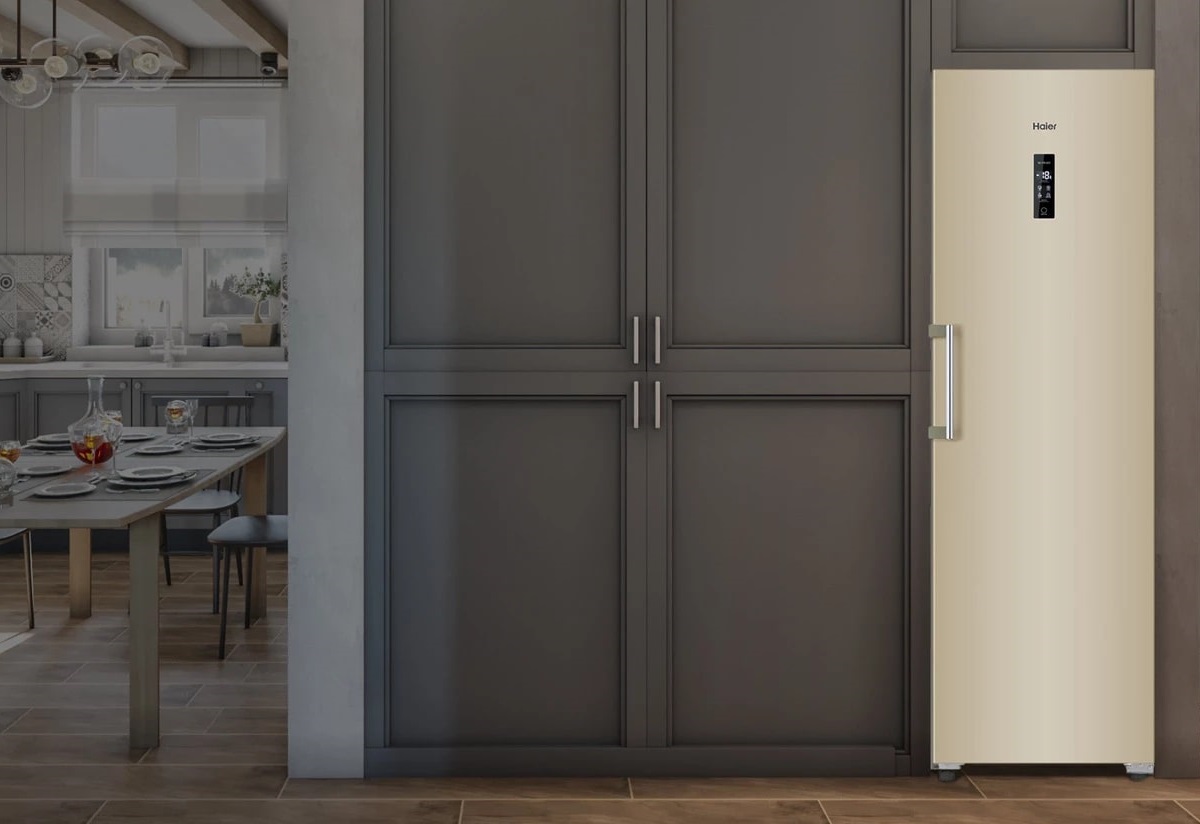 Морозильник Haier H2F-262GAA представлен в стильном золотистом исполнении и сразу привлекает внимание аккуратными линиями и металлическим корпусом. Его строгая геометрия в сочетании с внешней ручкой создаёт премиальный образ, который легко впишется в современную кухню или подсобное помещение. Высота 186.5 см и стандартная ширина 59.5 см позволяют разместить прибор в нише или рядом с другой техникой, а регулировка ножек обеспечивает устойчивость на неровной поверхности.