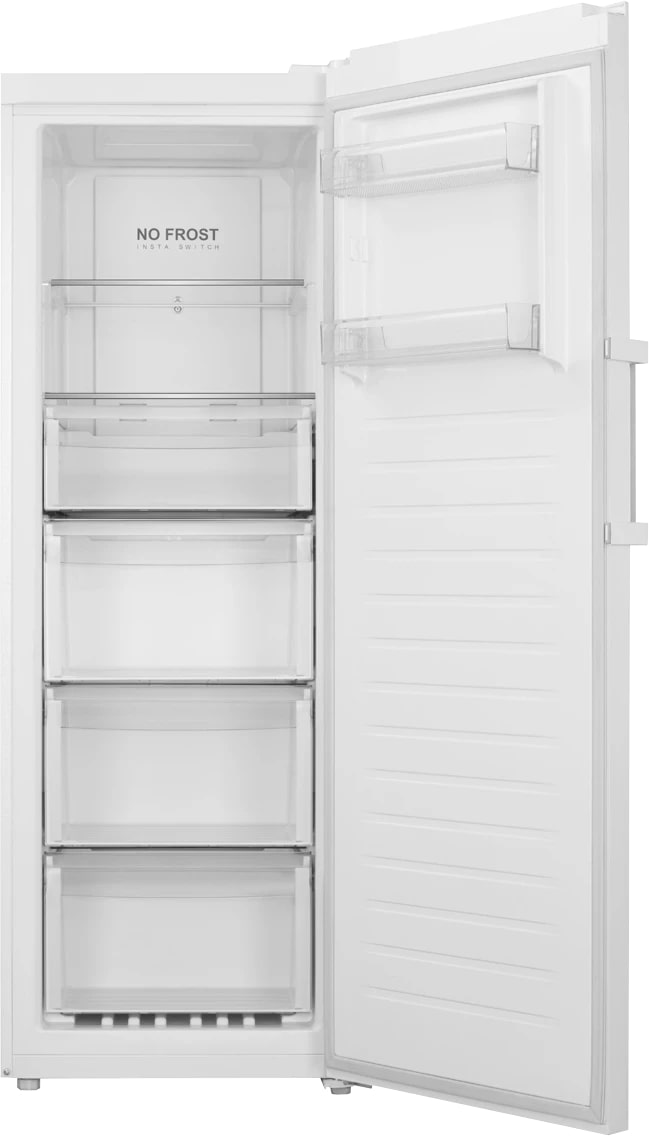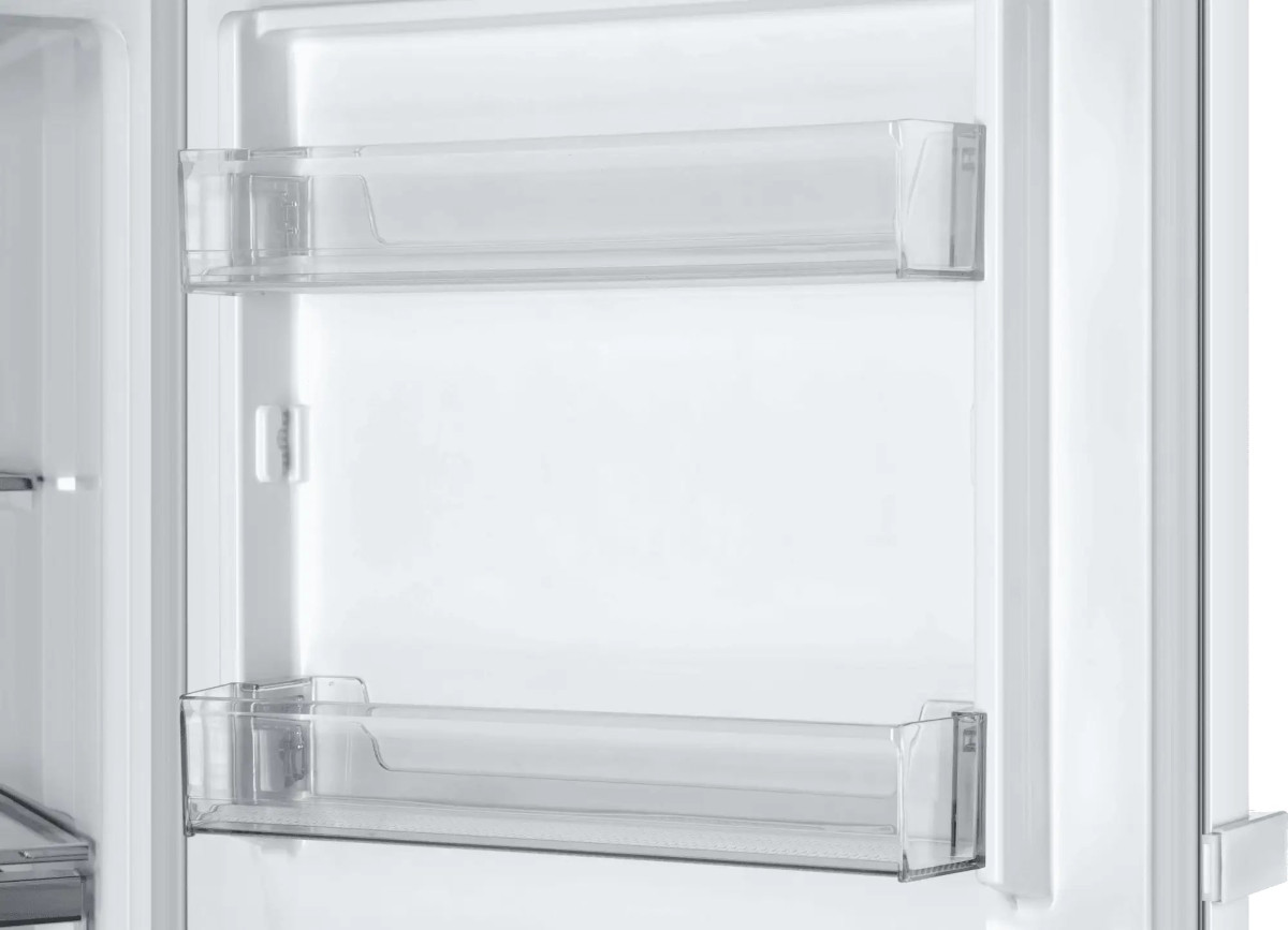 Высота 170,5 см при ширине 59,5 см и глубине 67 см позволяет разместить прибор в стандартном кухонном проеме. Общий объем 285 литров дает места для больших закупок и заготовок на зиму. Внутри установлены две прочные стеклянные полки и четыре прозрачных ящика, что упрощает сортировку продуктов. Стекло устойчиво к механическим нагрузкам и легко чистится, а прозрачные секции помогают быстро найти нужное.