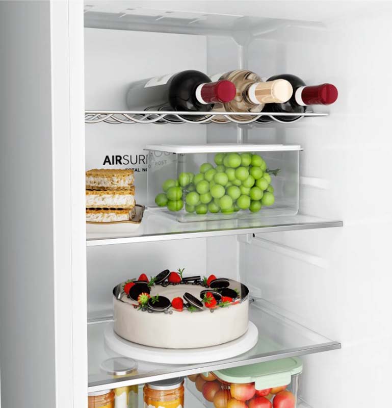 No Frost (Total No Frost, Frost Free): вентилятор обеспечивает циркуляцию охлажденного воздуха, благодаря чему лед не нарастает на стенке, а концентрируется только на скрытом внутри холодильника испарителе. Талая вода собирается в специальной емкости и испаряется. Такой холодильник не нужно размораживать – это экономит время и позволяет не останавливать прибор. Благодаря этим плюсам в современных моделях No Frost – самая распространенная система.