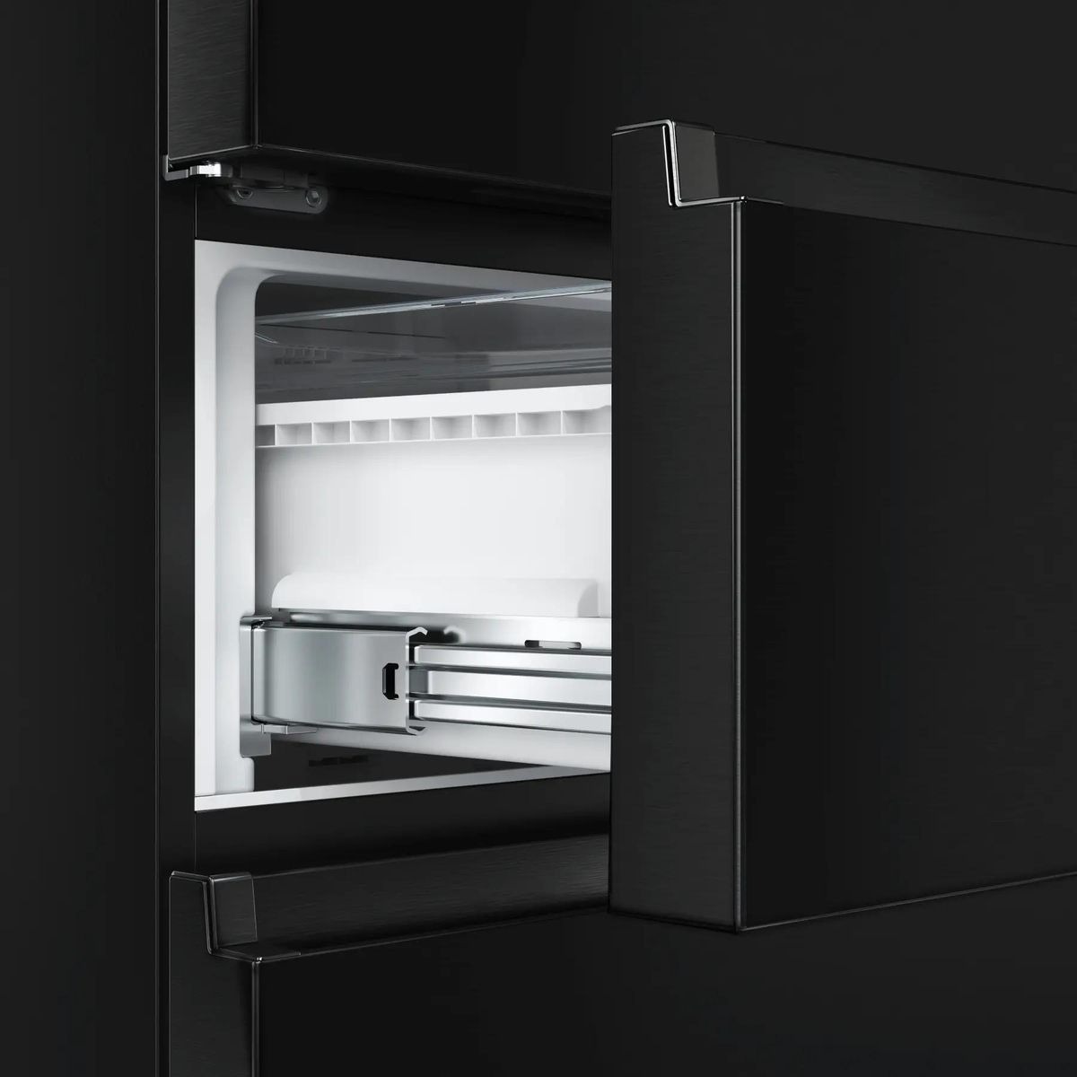 Очень редко в холодильниках можно увидеть откидную дверцу — она имеется, например, в отсеке для вакуумирования в холодильниках Hitachi.