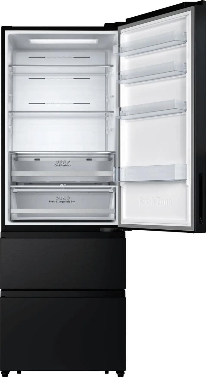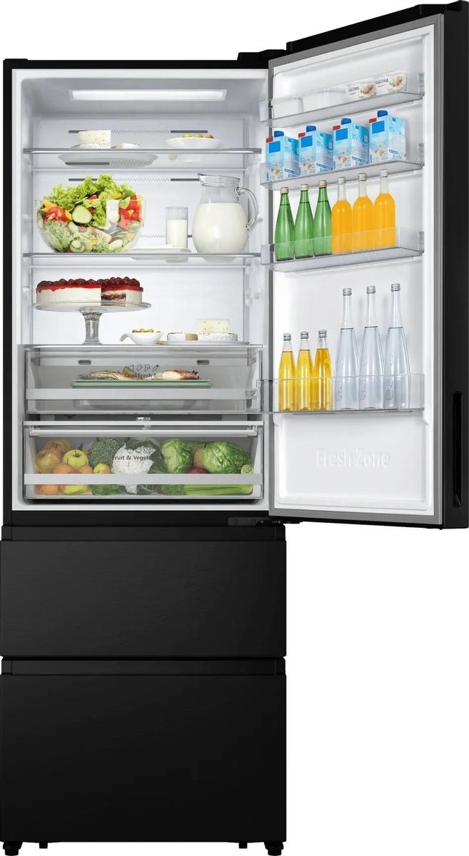 Трехкамерные модели выпускаются в нескольких вариантах. В некоторых случаях в качестве третьей камеры поступает так называемая зона свежести — отделение, где поддерживается температура около 0 градусов. В другом варианте подобные модели имеют морозильную камеру, состоящую из двух выдвижных ящиков.