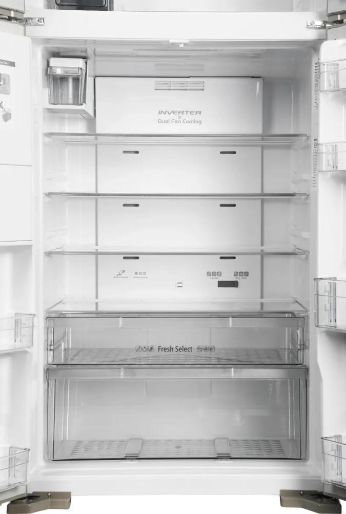 Четырех-, пяти- и шестикамерные модели включают, кроме морозильной и холодильной камер, отдельную зону свежести (иногда состоящую из сухого и влажного отсеков) и специальный отсек для ледогенератора, а в некоторых случаях еще и винное отделение.