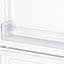 Полки в отделении бывают нескольких типов. Чаще всего встречаются полки из закаленного или ударопрочного стекла. Закаленное стекло выдерживает особенно большие нагрузки до 25 кг, так что на них можно устанавливать посуду из любого материала. Стекло является безопасным нейтральным материалом, не желтеет и не портится со временем, а также быстро и легко моется. Для того чтобы предотвратить проливание жидкости, полки оснащаются металлической или пластиковой окантовкой.