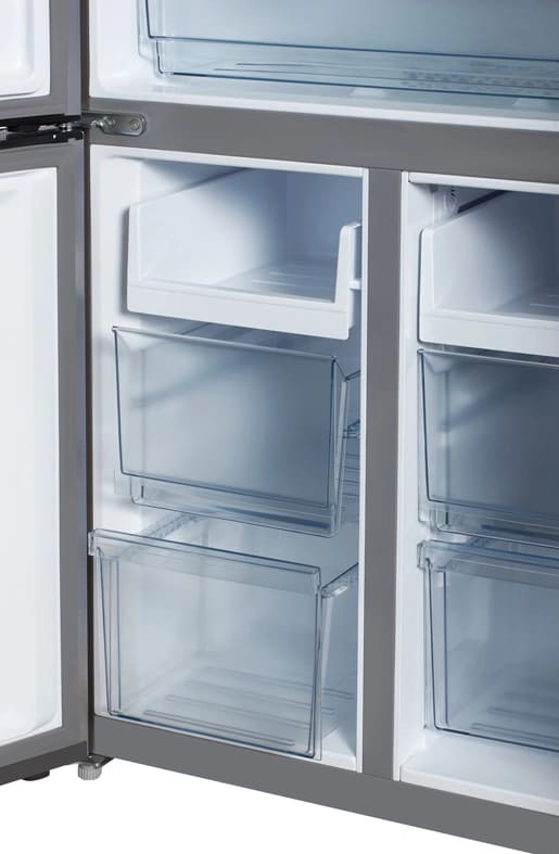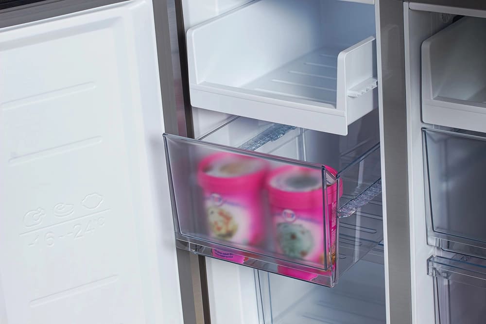 Трехкамерные модели выпускаются в нескольких вариантах. В некоторых случаях в качестве третьей камеры поступает так называемая зона свежести — отделение, где поддерживается температура около 0 градусов. В другом варианте подобные модели имеют морозильную камеру, состоящую из двух выдвижных ящиков.