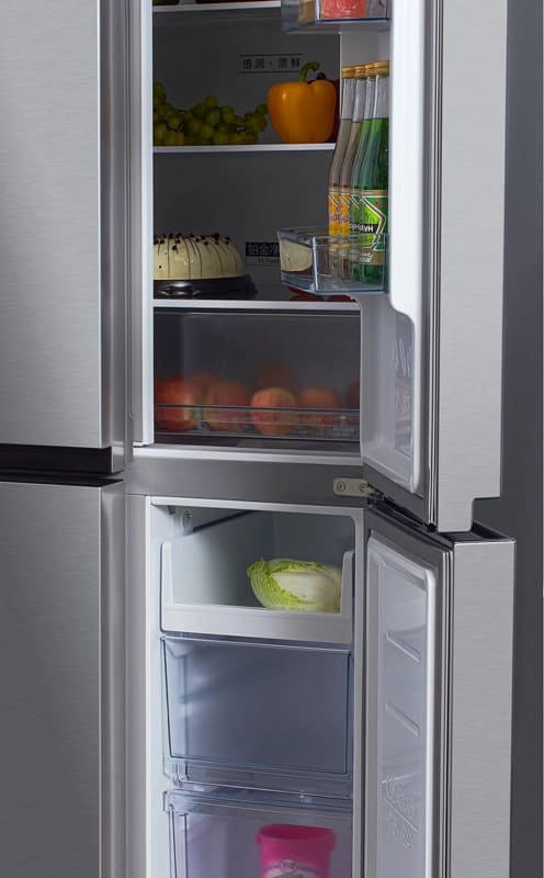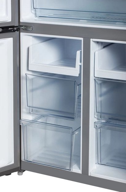 Холодильники с так называемой французской дверью или French Door также имеют распашные двери, но за ними находится не две, а одна камера. Эти двери занимают не всю высоту холодильника, а только ее часть. В нижней части подобных холодильников могут находиться либо еще две распашные двери, либо выдвижные морозильные ящики.