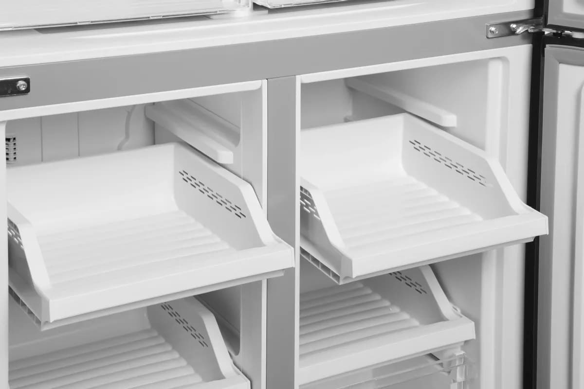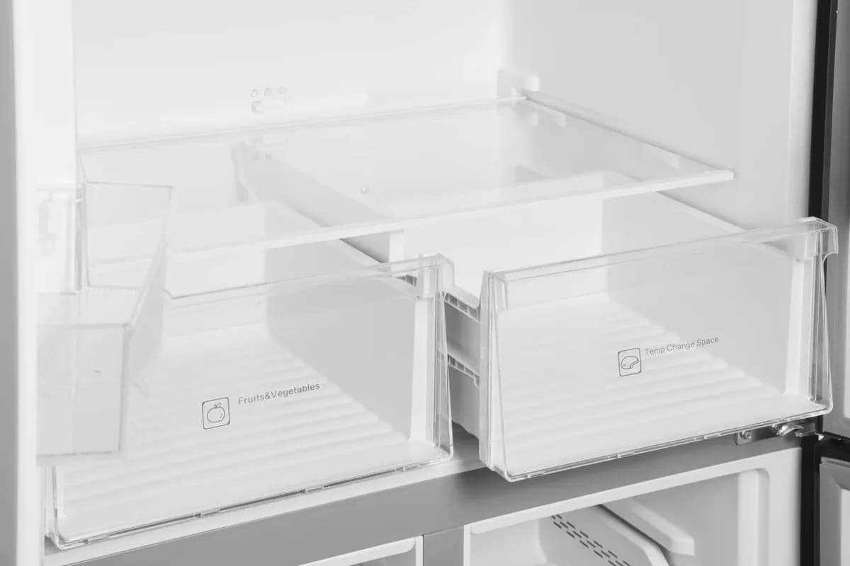 Трехкамерные модели выпускаются в нескольких вариантах. В некоторых случаях в качестве третьей камеры поступает так называемая зона свежести — отделение, где поддерживается температура около 0 градусов. В другом варианте подобные модели имеют морозильную камеру, состоящую из двух выдвижных ящиков.