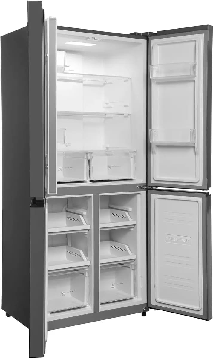 Иногда в отдельный тип выделяют так называемые холодильники с французской дверью French Door. Морозильная камера в них находится снизу, однако такие модели оснащаются четырьмя распашными дверями вместо двух: двумя сверху и двумя снизу.