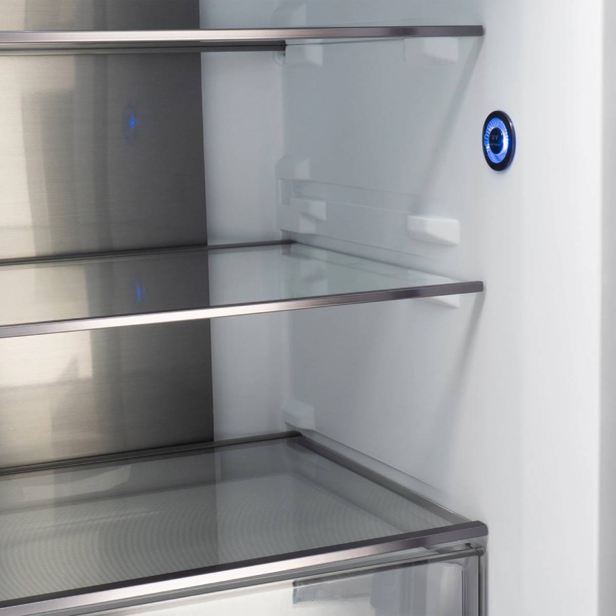 Внутреннее освещение холодильной камеры позволяет обеспечить хороший обзор содержимого и быстро найти необходимые продукты. Чем меньше времени будет открыта дверца холодильника, тем лучше будет поддерживаться в камере выбранная температура, следовательно, улучшится и качество хранения продуктов.