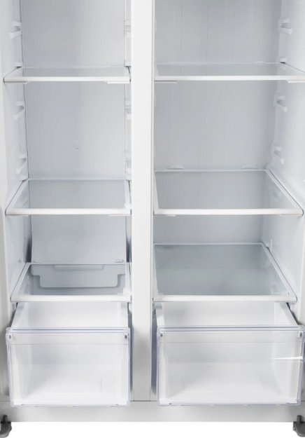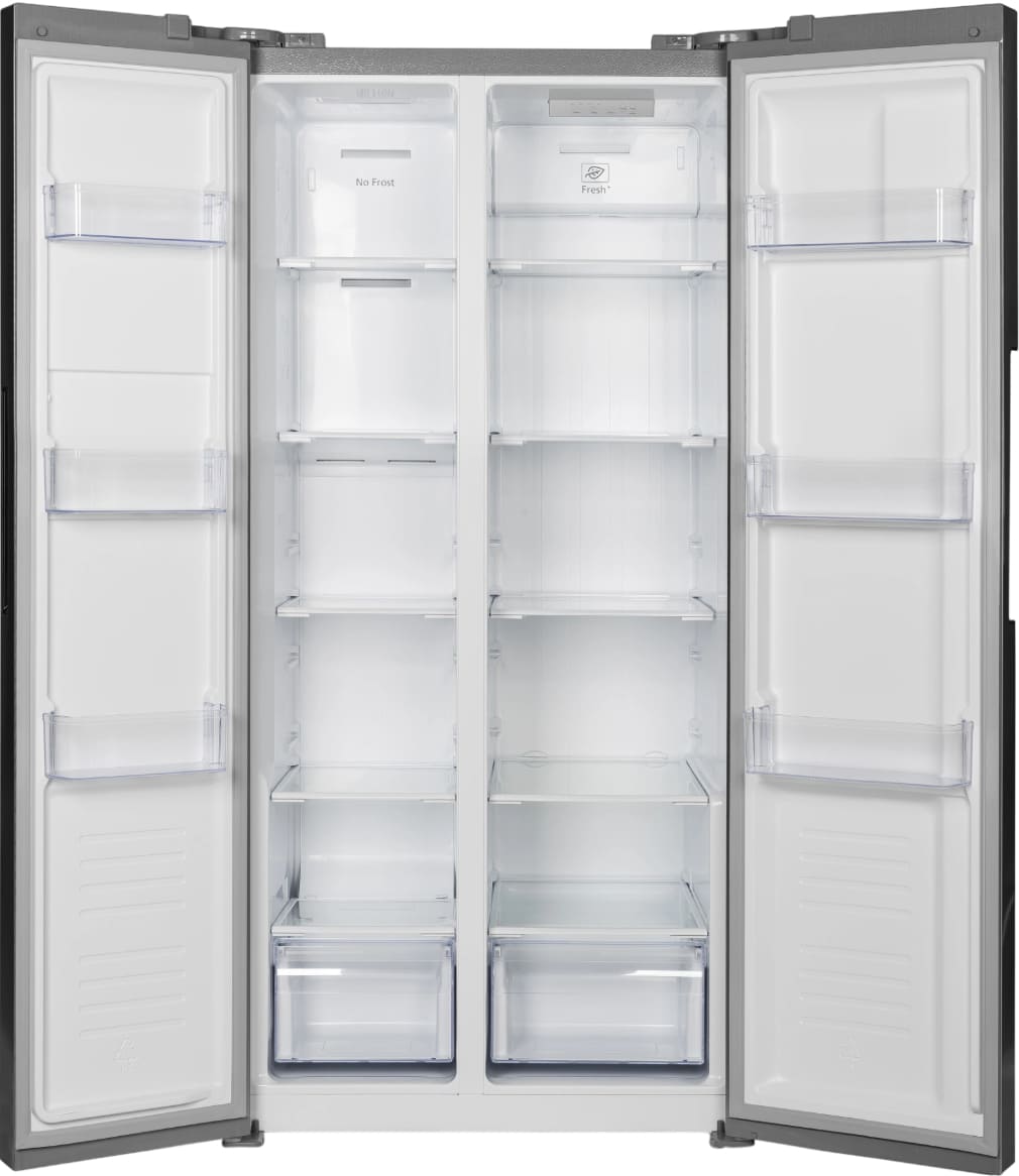 Данная модель — отдельностоящая, поэтому нужно тщательно подобрать место для ее размещения. Холодильник Side-by-Side с необычным расположением камер — сбоку друг от друга — позволяет увеличить объем продуктов для хранения. Такой вариант подходит обладателям просторной кухни, большим семьям, людям, которые запасают продукты и готовят впрок. Количество камер: 2.