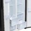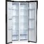 Выглядит представительно: высокий отдельностоящий Side-by-Side холодильник с фронтом из металла черного цвета и скрытой ручкой. Две плотно сочетающиеся дверцы при угле открывания до 149° обеспечивают удобный доступ, а размеры 178×83.6×63.6 см дают представление о внушительной габаритности прибора.