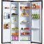 Внешний вид этой отдельно стоящей модели притягивает взгляд строгой отделкой «чёрная сталь» и металлическим фронтом, который выглядит монолитно и брутально. Фасад лишён выступающих ручек — они скрыты, что придаёт фронту четкие линии и позволяет вписать прибор в плотную мебельную композицию. Две двери формата side-by-side подчёркивают симметрию, а LED-дисплей на дверце и сенсорные кнопки добавляют технологичных акцентов без лишних деталей. Габариты 178×91.1×63.6 см требуют просторного помещения, при этом угол открытия дверей до 149° упрощает доступ к полкам.