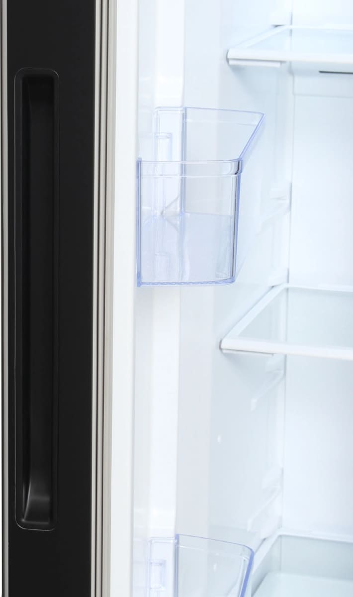 Данная модель — отдельностоящая, поэтому нужно тщательно подобрать место для ее размещения. Холодильник Side-by-Side с необычным расположением камер — сбоку друг от друга — позволяет увеличить объем продуктов для хранения. Такой вариант подходит обладателям просторной кухни, большим семьям, людям, которые запасают продукты и готовят впрок. Количество камер: 2.