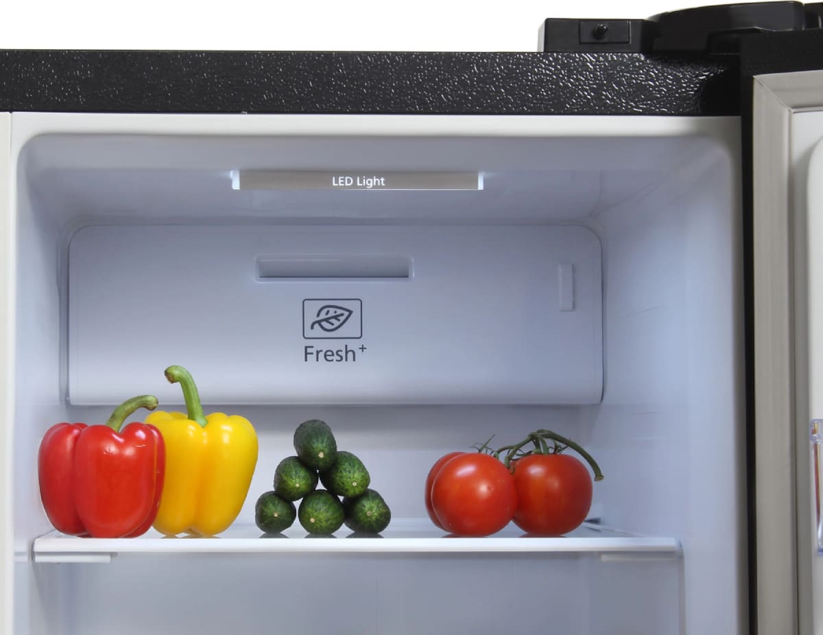 Вместительные контейнеры позволяют хранить достаточное количество овощей и фруктов. Для более длительного хранения и поддержания свежести овощей и фруктов разработаны специальные системы хранения. Среди них, например, зона свежести с увеличенной влажностью до 85% и температурой около 0 градусов. Это герметично закрывающийся ящик, часто на выдвижных роликах или направляющих, в котором имеется специальное задвижка, позволяющая регулировать влажность. Как известно, при более высокой влажности продукты с большим содержанием воды дольше остаются свежими.
