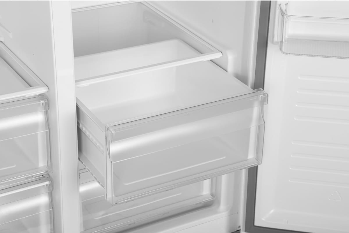 Данная модель — отдельностоящая, поэтому нужно тщательно подобрать место для ее размещения. Холодильник Side-by-Side с необычным расположением камер — сбоку друг от друга — позволяет увеличить объем продуктов для хранения. Такой вариант подходит обладателям просторной кухни, большим семьям, людям, которые запасают продукты и готовят впрок. Количество камер: 2.