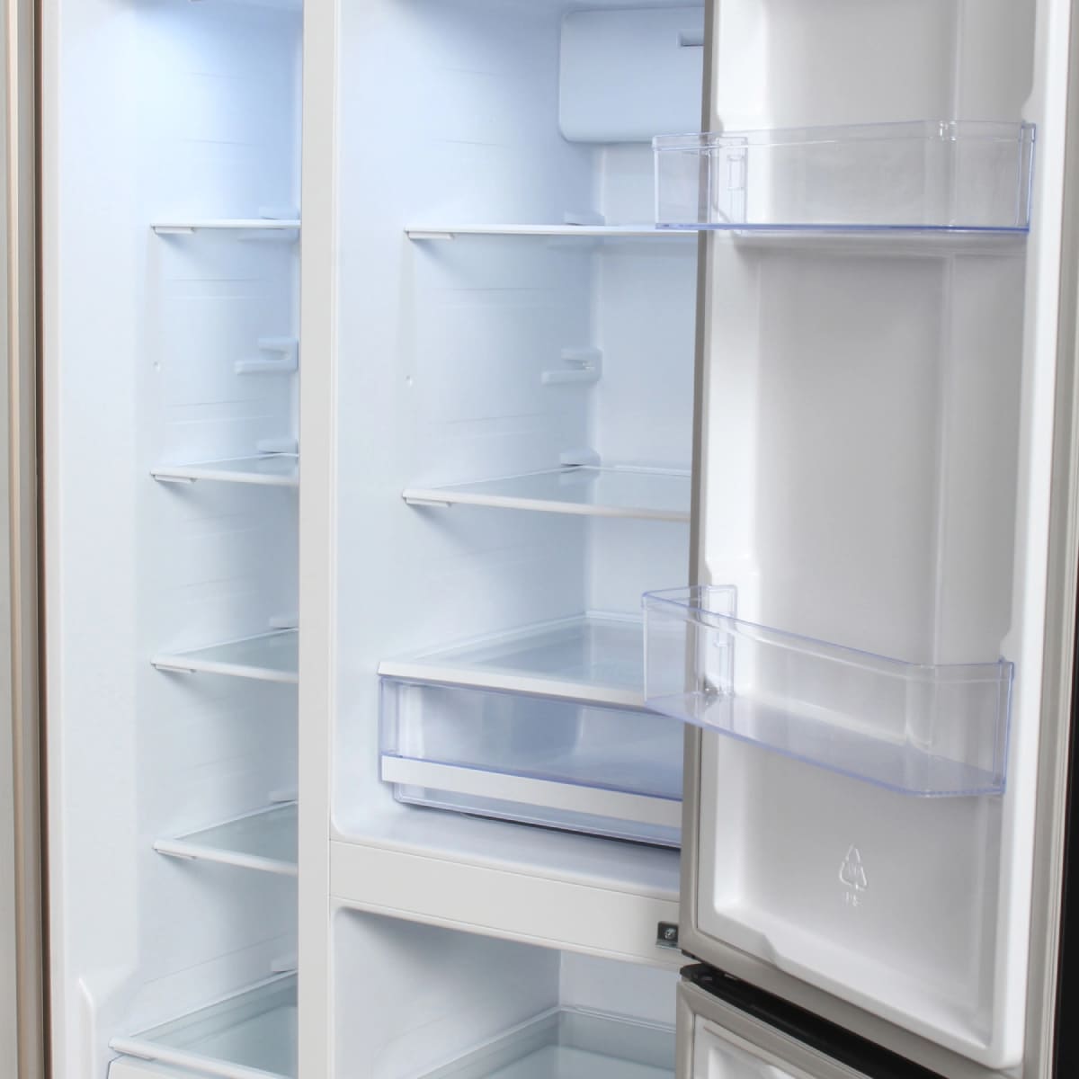 Ящики для продуктов изготавливаются либо целиком из прозрачного пластика, либо часто имеют переднюю прозрачную панель, которая обеспечивает лучший обзор. Полки в большинстве холодильников могут перемещаться по высоте, устанавливаются на специальных направляющих и без труда снимаются для очистки.