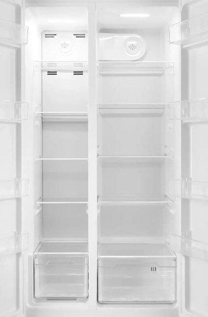 Данная модель — отдельностоящая, поэтому нужно тщательно подобрать место для ее размещения. Холодильник Side-by-Side с необычным расположением камер — сбоку друг от друга — позволяет увеличить объем продуктов для хранения. Такой вариант подходит обладателям просторной кухни, большим семьям, людям, которые запасают продукты и готовят впрок. Количество камер: 2.
