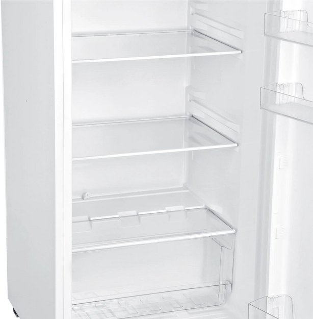 Полки в отделении бывают нескольких типов. Чаще всего встречаются полки из закаленного или ударопрочного стекла. Закаленное стекло выдерживает особенно большие нагрузки до 25 кг, так что на них можно устанавливать посуду из любого материала. Стекло является безопасным нейтральным материалом, не желтеет и не портится со временем, а также быстро и легко моется. Для того чтобы предотвратить проливание жидкости, полки оснащаются металлической или пластиковой окантовкой.