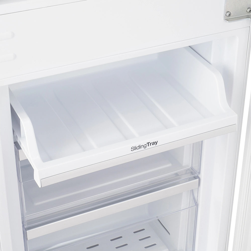 Встраиваемый прибор проще разместить в комнате, даже если общий метраж не такой уж большой. Вы можете спрятать его за декоративной панелью от мебельного фасада — советуем заранее определить нишу и заказывать панели исходя из типа крепления к двери. Способ монтажа в данной модели: жесткое крепление (система door on door) Вы можете поменять направление открывания двери, так как упор переставляемый и ее можно перевесить на другую сторону. Такая функция открывает больше возможностей для установки. Холодильник с морозильником обладает всеми опциями, которые чаще всего ищут и выбирают покупатели. Стандартная конфигурация — универсальный вариант для любой квартиры. Количество камер: 2.
