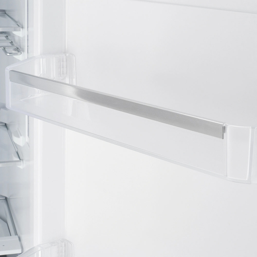 Для стеклянных бутылок, особенно винных и содержащих другие алкогольные напитки, предусматривается размещение на подвесной решетчатой металлической полке. Бутылки на ней располагаются в горизонтальном положении — это оптимальный способ хранения вин. Съемная металлическая полка легко моется под краном.