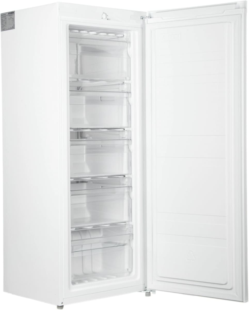 Данная модель — отдельностоящая, поэтому нужно тщательно подобрать место для ее размещения. Вы можете поменять направление открывания двери, так как упор переставляемый и ее можно перевесить на другую сторону. Такая функция открывает больше возможностей для установки. Отдельную морозильную камеру чаще всего выбирают для частного дома или дачи, для производства, когда актуально хранение большого объема замороженных продуктов. Советуем обратить внимание на этот вариант. Количество камер: 1.