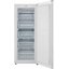 Этот отдельно стоящий морозильник выглядит белого цвета с металлизированным фронтом и незаметной, спрятанной ручкой. При габаритах 142×55×55 см он занимает умеренную площадь и удобен для размещения в кухонном пространстве или подсобном помещении. Одна дверь с правым дверным упором открывается под углом до 135°, а возможность перевешивания петли позволяет приспособить агрегат под расположение комнаты. Ножки регулируются для выравнивания по полу, а упаковочные размеры 144×58×58 см учитывают транспортировку и хранение при доставке.