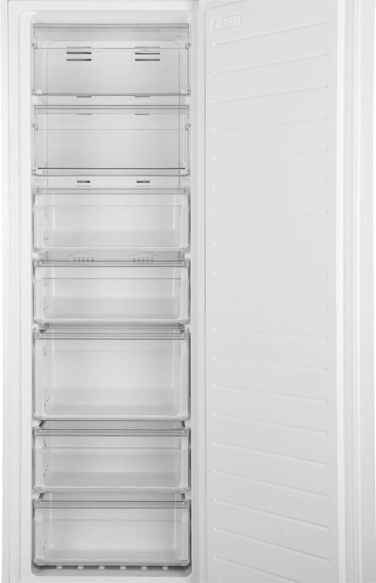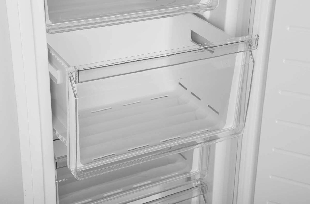 Данная модель — отдельностоящая, поэтому нужно тщательно подобрать место для ее размещения. Вы можете поменять направление открывания двери, так как упор переставляемый и ее можно перевесить на другую сторону. Такая функция открывает больше возможностей для установки. Отдельную морозильную камеру чаще всего выбирают для частного дома или дачи, для производства, когда актуально хранение большого объема замороженных продуктов. Советуем обратить внимание на этот вариант. Количество камер: 1.
