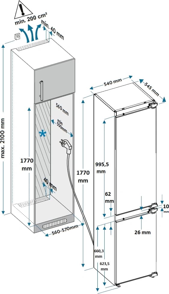 Высота холодильника — один из главных факторов, влияющих на выбор модели. Очевидно, что холодильник большей высоты будет более вместительным. Однако при выборе устройства необходимо учитывать целый ряд факторов, прежде всего высоту потолков, пищевые привычки, состав семьи, рост людей, которые будут холодильником пользоваться. Как правило, встраиваемые устройства представлены в несколько меньшем ассортименте, в том числе и по высоте.