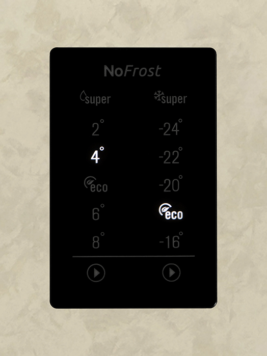 ΠΠΎΡΠ°Π·Π΄ΠΎ ΡΠΎΡΠ½Π΅Π΅ ΡΠΎΡΠΈΠ΅Π½ΡΠΈΡΠΎΠ²Π°ΡΡΡΡ ΠΏΠΎ ΠΈΠ½Π΄ΠΈΠΊΠ°ΡΠΎΡΠ°ΠΌ ΠΌΠΎΠΆΠ½ΠΎ Π² Ρ ΠΎΠ»ΠΎΠ΄ΠΈΠ»ΡΠ½ΠΈΠΊΠ°Ρ Ρ ΡΠ»Π΅ΠΊΡΡΠΎΠ½Π½ΠΎΠΉ ΡΠΈΡΡΠ΅ΠΌΠΎΠΉ ΡΠΏΡΠ°Π²Π»Π΅Π½ΠΈΡ. ΠΡΠΈ ΡΡΡΡΠΎΠΉΡΡΠ²Π° ΠΎΠ±ΡΡΠ½ΠΎ ΠΎΡΠ½Π°ΡΠ΅Π½Ρ Π΄ΠΈΡΠΏΠ»Π΅Π΅ΠΌ, Π½Π° ΠΊΠΎΡΠΎΡΠΎΠΌ Π²ΡΡΠ²Π΅ΡΠΈΠ²Π°ΡΡΡΡ Π·Π½Π°ΡΠ΅Π½ΠΈΡ ΡΠ°ΠΊΡΠΈΡΠ΅ΡΠΊΠΎΠΉ ΡΠ΅ΠΌΠΏΠ΅ΡΠ°ΡΡΡΡ Π² Ρ ΠΎΠ»ΠΎΠ΄ΠΈΠ»ΡΠ½ΠΎΠΉ ΠΈ ΠΌΠΎΡΠΎΠ·ΠΈΠ»ΡΠ½ΠΎΠΉ ΠΊΠ°ΠΌΠ΅ΡΠ°Ρ . Π ΡΠ΄ΠΎΠΌ Ρ Π½ΠΈΠΌΠΈ ΡΠ°ΡΠΏΠΎΠ»Π°Π³Π°ΡΡΡΡ ΠΊΠ½ΠΎΠΏΠΊΠΈ, Π²ΠΎ ΠΌΠ½ΠΎΠ³ΠΈΡ ΡΠ»ΡΡΠ°ΡΡ ΡΠ΅Π½ΡΠΎΡΠ½ΡΠ΅, ΠΏΡΠΈ ΠΏΠΎΠΌΠΎΡΠΈ ΠΊΠΎΡΠΎΡΡΡ ΠΌΠΎΠΆΠ½ΠΎ ΡΠ΅Π³ΡΠ»ΠΈΡΠΎΠ²Π°ΡΡ ΡΠ΅ΠΌΠΏΠ΅ΡΠ°ΡΡΡΡ Π² ΠΊΠ°ΠΆΠ΄ΠΎΠΉ ΠΊΠ°ΠΌΠ΅ΡΠ΅ ΠΎΡΠ΄Π΅Π»ΡΠ½ΠΎ, ΠΈ ΠΈΠ½Π΄ΠΈΠΊΠ°ΡΠΎΡΡ Π²ΠΊΠ»ΡΡΠ΅Π½ΠΈΡ ΡΡΠΈΡ ΠΊΠ°ΠΌΠ΅Ρ. ΠΠ΄Π΅ΡΡ ΠΆΠ΅, Π½Π° ΠΏΠ°Π½Π΅Π»ΠΈ ΠΈΠ½ΡΡΡΡΠΌΠ΅Π½ΡΠΎΠ², Π½Π°Ρ ΠΎΠ΄ΡΡΡΡ ΠΈΠ½Π΄ΠΈΠΊΠ°ΡΠΎΡΡ, ΡΠΊΠ°Π·ΡΠ²Π°ΡΡΠΈΠ΅ Π½Π° Π°ΠΊΡΠΈΠ²Π°ΡΠΈΡ Π΄ΠΎΠΏΠΎΠ»Π½ΠΈΡΠ΅Π»ΡΠ½ΡΡ ΠΎΠΏΡΠΈΠΉ — Π½Π°ΠΏΡΠΈΠΌΠ΅Ρ, ΡΠ΅ΠΆΠΈΠΌΠΎΠ² Π±ΡΡΡΡΠΎΠ³ΠΎ Π·Π°ΠΌΠΎΡΠ°ΠΆΠΈΠ²Π°Π½ΠΈΡ ΠΈ Π±ΡΡΡΡΠΎΠ³ΠΎ ΠΎΡ Π»Π°ΠΆΠ΄Π΅Π½ΠΈΡ, ΠΎΡΠΏΡΡΠΊΠ½ΠΎΠ³ΠΎ ΡΠ΅ΠΆΠΈΠΌΠ°, Π±Π»ΠΎΠΊΠΈΡΠΎΠ²ΠΊΠΈ ΠΏΠ°Π½Π΅Π»ΠΈ ΡΠΏΡΠ°Π²Π»Π΅Π½ΠΈΡ ΠΎΡ Π΄Π΅ΡΠ΅ΠΉ.