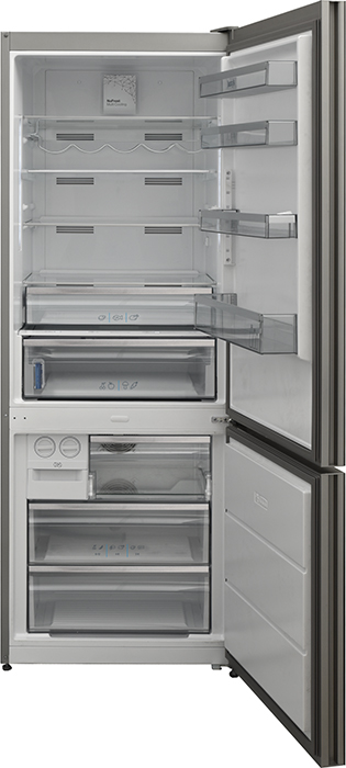 No Frost (Total No Frost, Frost Free): вентилятор обеспечивает циркуляцию охлажденного воздуха, благодаря чему лед не нарастает на стенке, а концентрируется только на скрытом внутри холодильника испарителе. Талая вода собирается в специальной емкости и испаряется. Такой холодильник не нужно размораживать – это экономит время и позволяет не останавливать прибор. Благодаря этим плюсам в современных моделях No Frost – самая распространенная система.