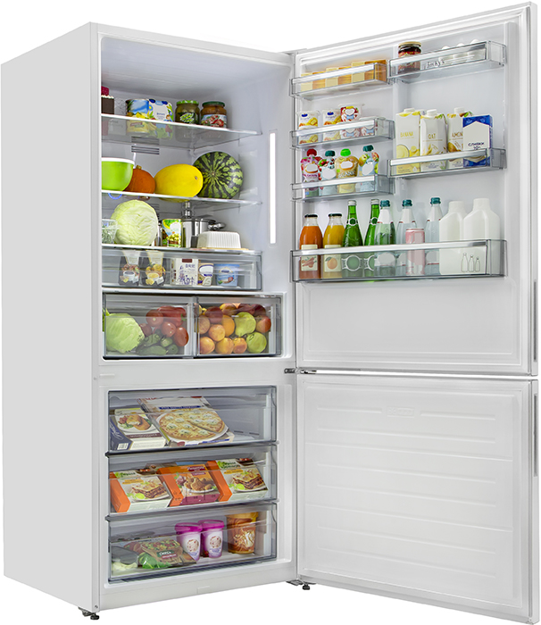 Наиболее разнообразны по ширине большие модели холодильников с распашными дверями типа Side-by-Side или модели с так называемыми французскими дверями. Ширина этих устройств может варьироваться в диапазоне от 80 до 160 см: многие из них представляют собой полноценный холодильник и морозильную камеру, расположенные рядом друг с другом. Несколько реже встречаются отдельностоящие холодильники нестандартной ширины от 70 до 90 см с верхней или нижней морозильной камерой — в основном это так называемые азиатские модели с морозильником сверху.