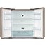 Дверные упоры сделаны по принципу Side-by-Side — створки раскрываются от центра в обе стороны. При этом сами камеры расположены стандартно: холодильная сверху, морозильная снизу. В морозильной камере находится лоток для приготовления кубиков льда и функция суперзамораживания. Этот режим может использоваться для заморозки большого количества продуктов, не изменяя температуру внутри морозильной камеры и не влияя на уже замороженные продукты.